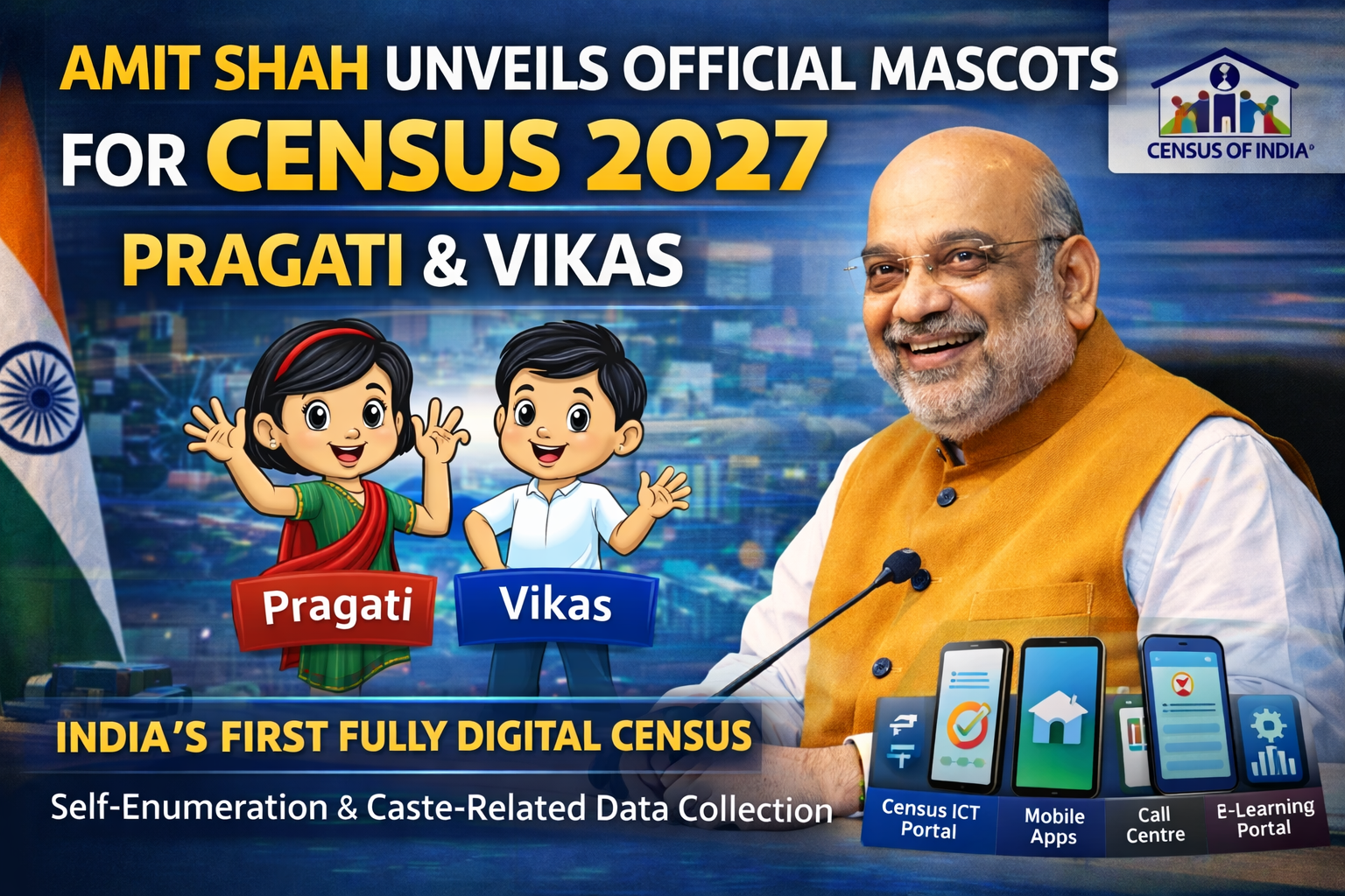 Union Home Minister Amit Shah unveiled two official mascots — Pragati and Vikas — for the upcoming Population Census 2027…