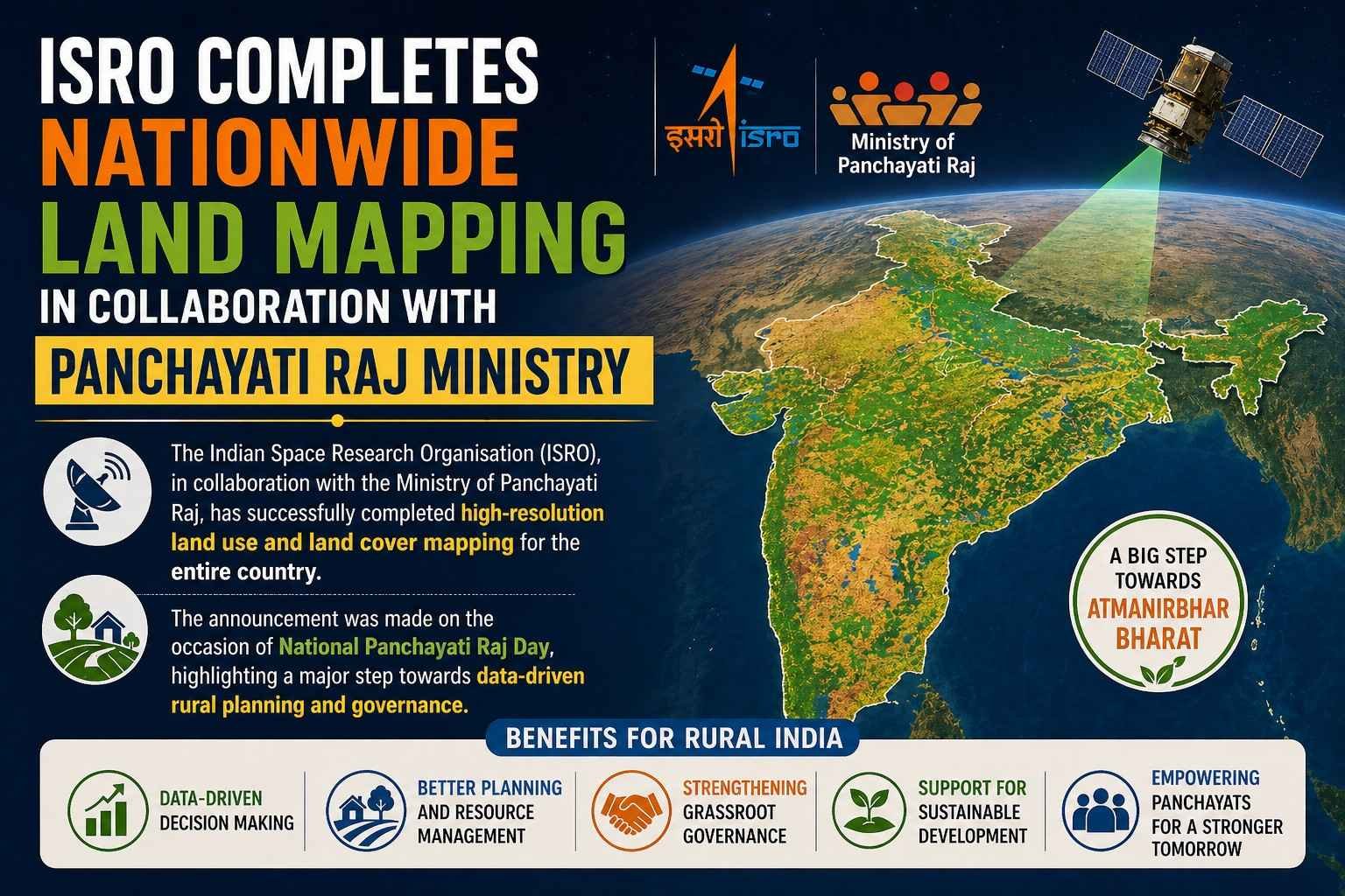 The Indian Space Research Organisation (ISRO), in collaboration with the Ministry of Panchayati Raj, has successfully completed high-resolution land use…