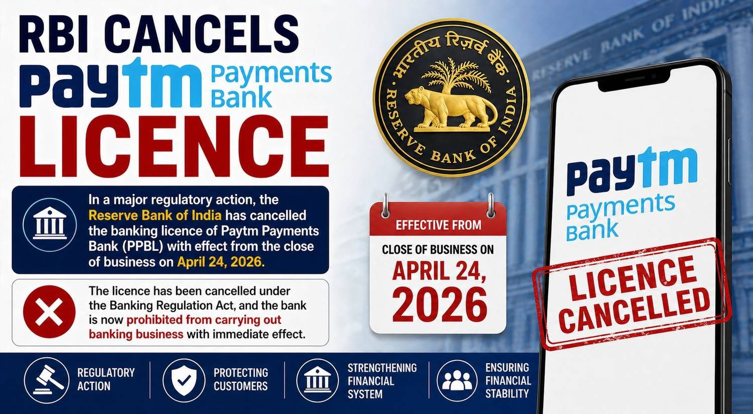 The Reserve Bank of India (RBI) has officially cancelled the banking licence of Paytm Payments Bank (PPBL), marking the end…