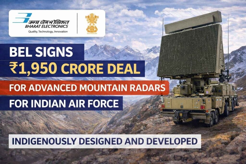 The Ministry of Defence has signed a contract worth ₹1,950 crore with Bharat Electronics Limited (BEL) for the procurement of two advanced mountain radars for the Indian Air Force.