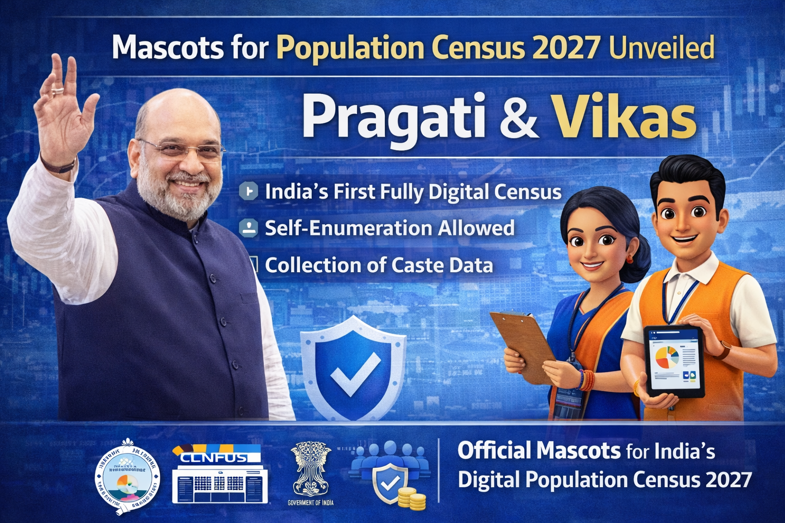 Union Home Minister Amit Shah unveiled two official mascots — Pragati and Vikas — for the upcoming Population Census 2027 on March 5, 2026.