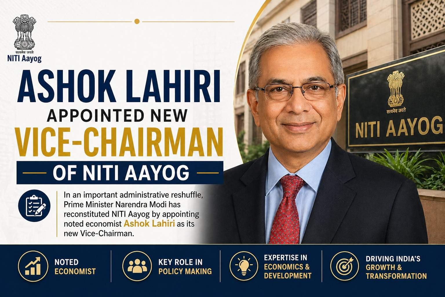 In an important administrative reshuffle, Prime Minister Narendra Modi has reconstituted NITI Aayog by appointing noted economist Ashok Lahiri as its new Vice-Chairman.