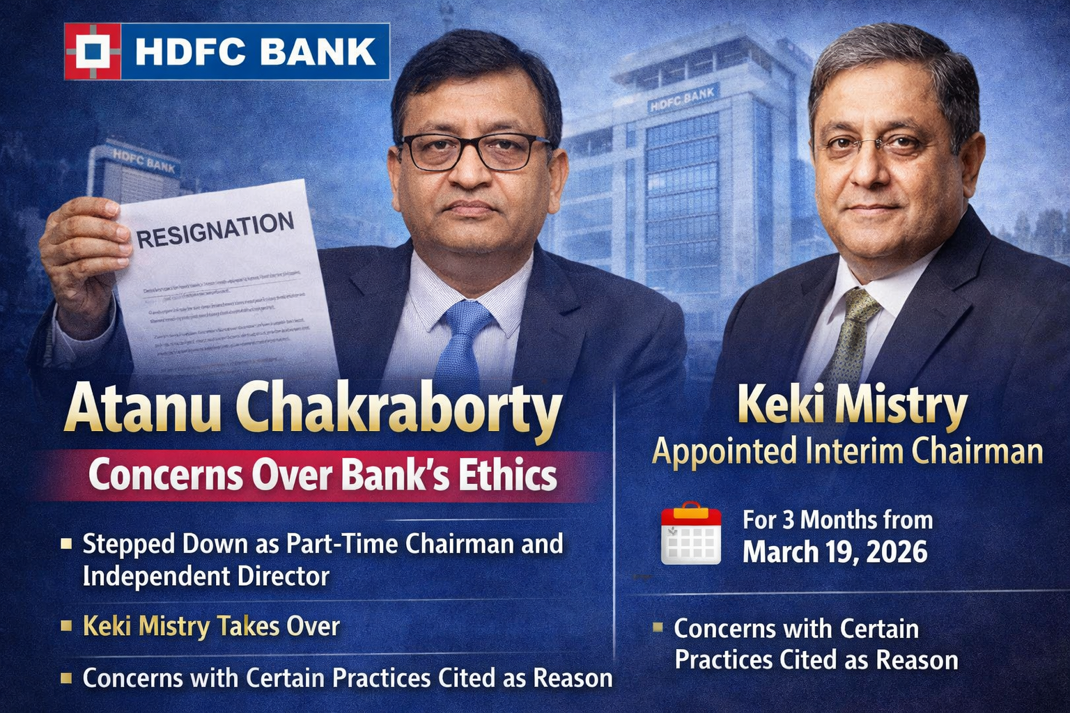In a key leadership change, Atanu Chakraborty has resigned as part-time Chairman and Independent Director of HDFC Bank with immediate effect.