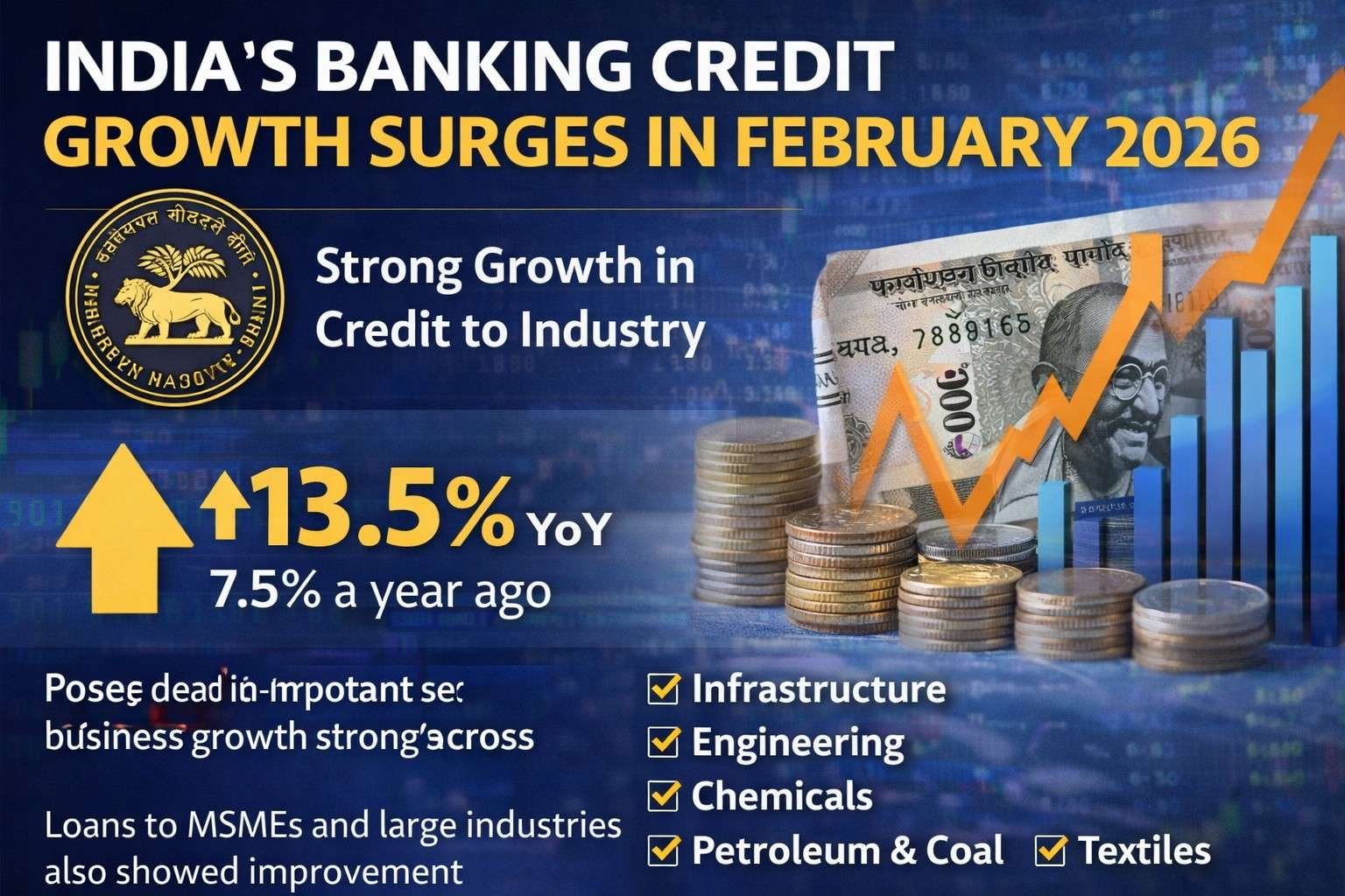 India’s banking sector witnessed a strong rise in credit growth in February 2026, reflecting improving economic activity and rising demand across key sectors. According to data released by the Reserve Bank of India (RBI), bank lending to industry and other sectors has grown at a faster pace compared to last year.