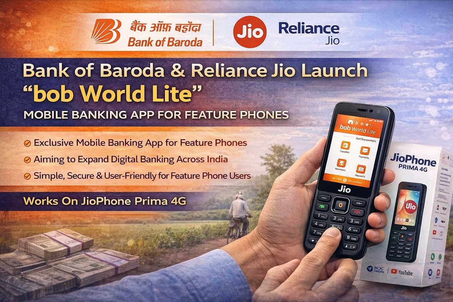 Bank of Baroda (BoB) and Reliance Jio have announced a new partnership to launch “bob World Lite”, a mobile banking app specially designed for feature phone users.
