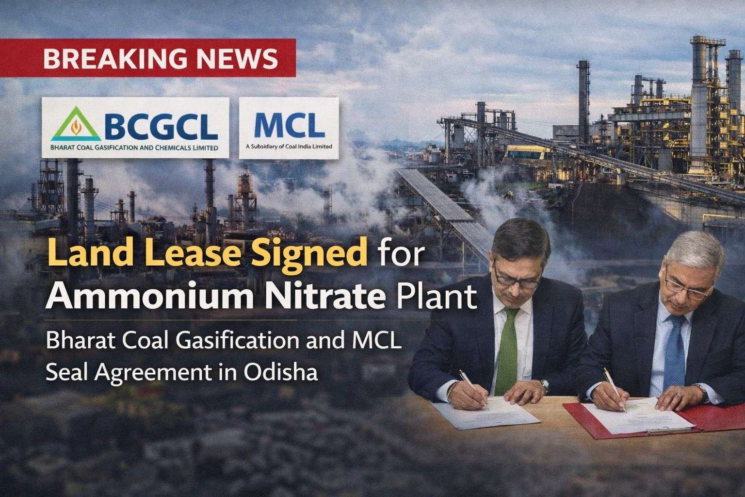 In a major step towards strengthening India’s coal gasification ambitions, Bharat Coal Gasification and Chemicals Ltd (BCGCL) and Mahanadi Coalfields Ltd (MCL), a subsidiary of Coal India Limited, have signed a land leasing agreement for a coal-to-ammonium nitrate project in Odisha.