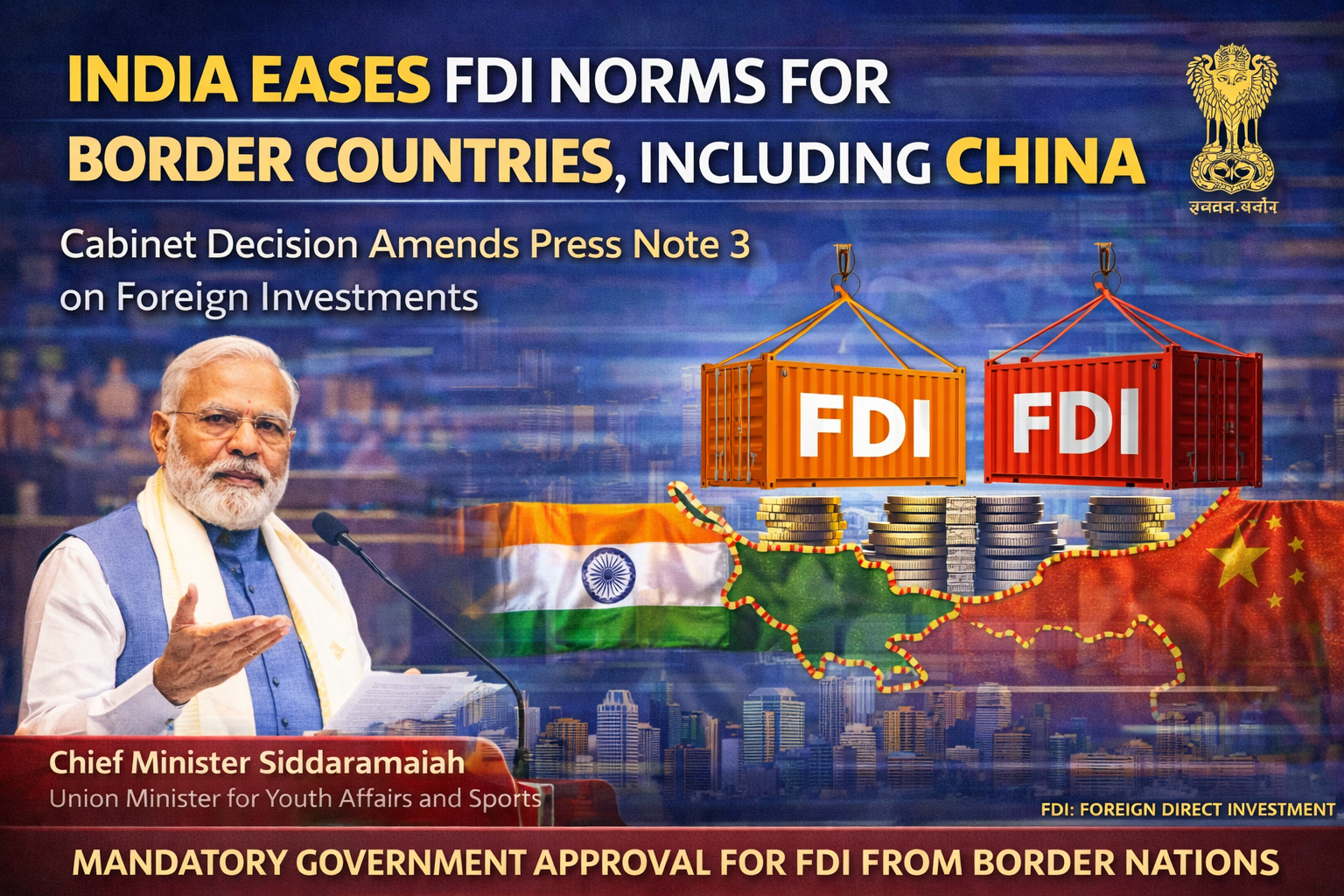 The Government of India has decided to ease foreign direct investment (FDI) norms for countries sharing land borders with India,…