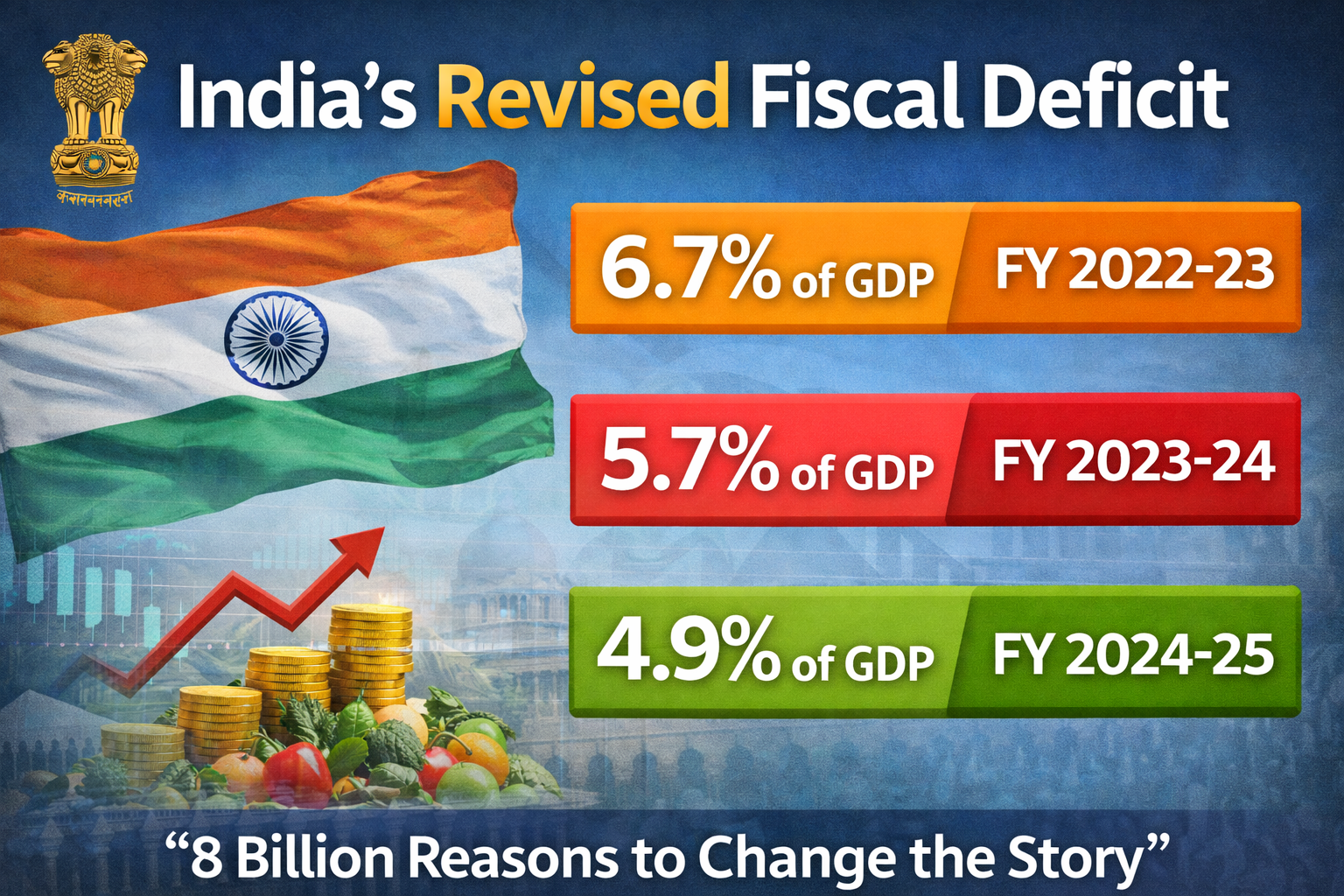 The Government of India has revised the fiscal deficit as a percentage of GDP for the last three financial years…