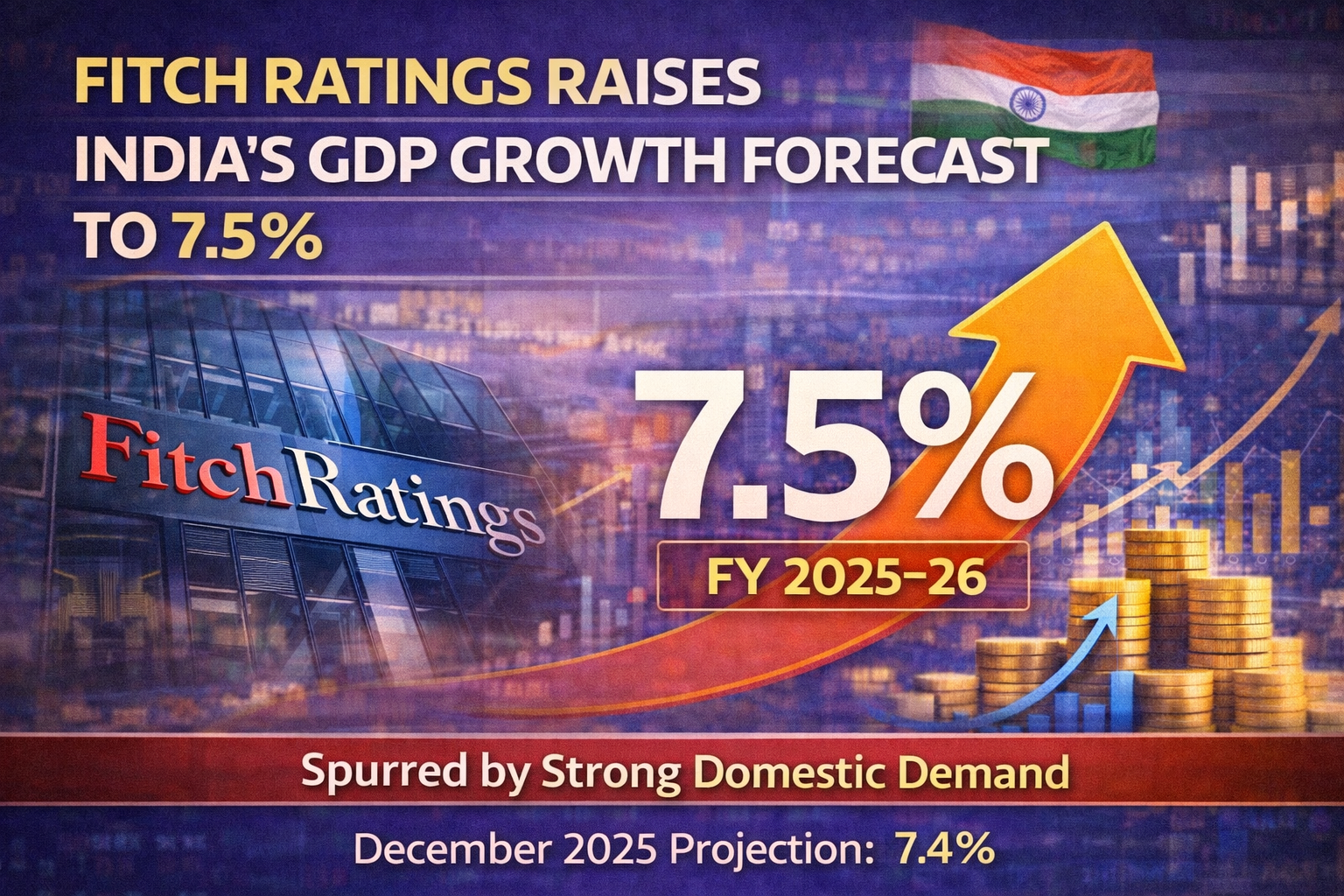 Global credit rating agency Fitch Ratings has slightly increased India’s GDP growth forecast to 7.5% for the current financial year…