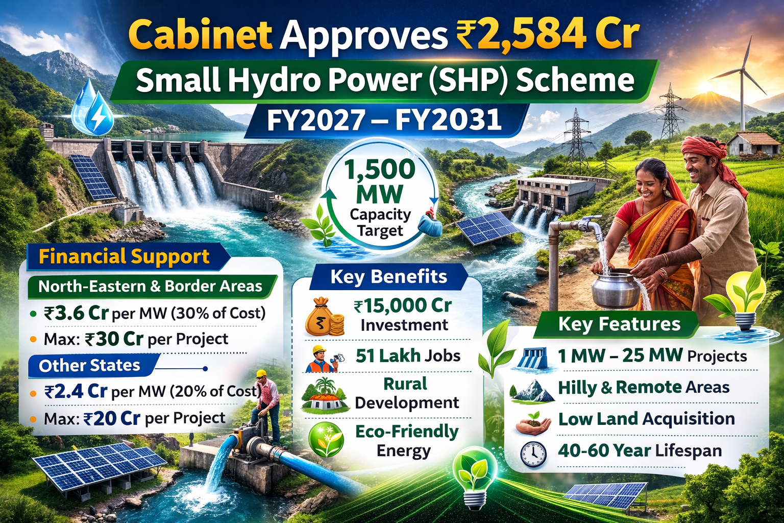 In a major push toward clean and sustainable energy, the Union Cabinet has approved a new Small Hydro Power (SHP)…