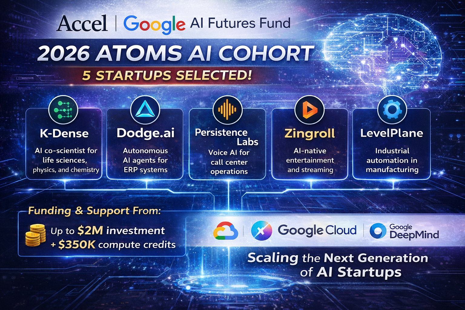 Venture capital firm Accel and the Google AI Futures Fund have announced the five startups selected for the 2026 Atoms…