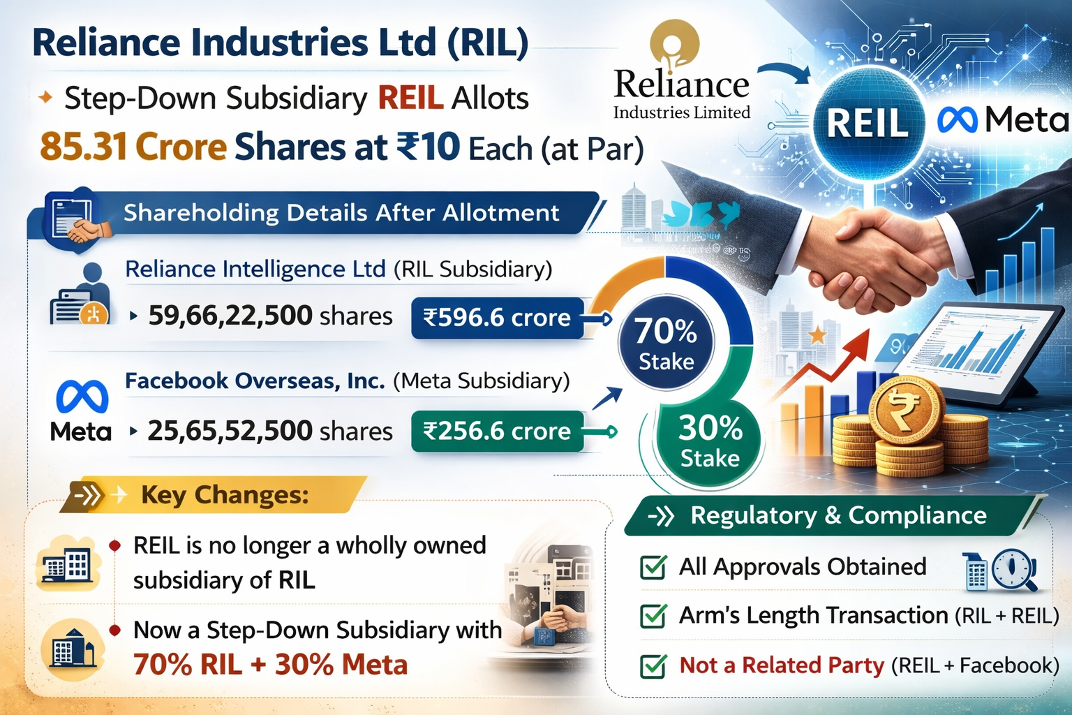 The shares were allotted to Reliance Intelligence Ltd, a wholly owned subsidiary of RIL, and Facebook Overseas, Inc., which is a wholly owned subsidiary of Meta Platforms, Inc..