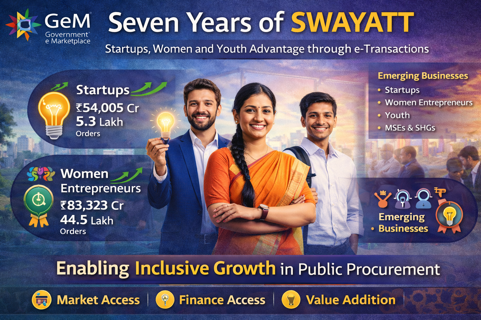 The Government e-Marketplace (GeM) recently celebrated the seven-year journey of its flagship initiative SWAYATT (Startups, Women and Youth Advantage through e-Transactions), highlighting its role in making public procurement more inclusive for emerging entrepreneurs across India.