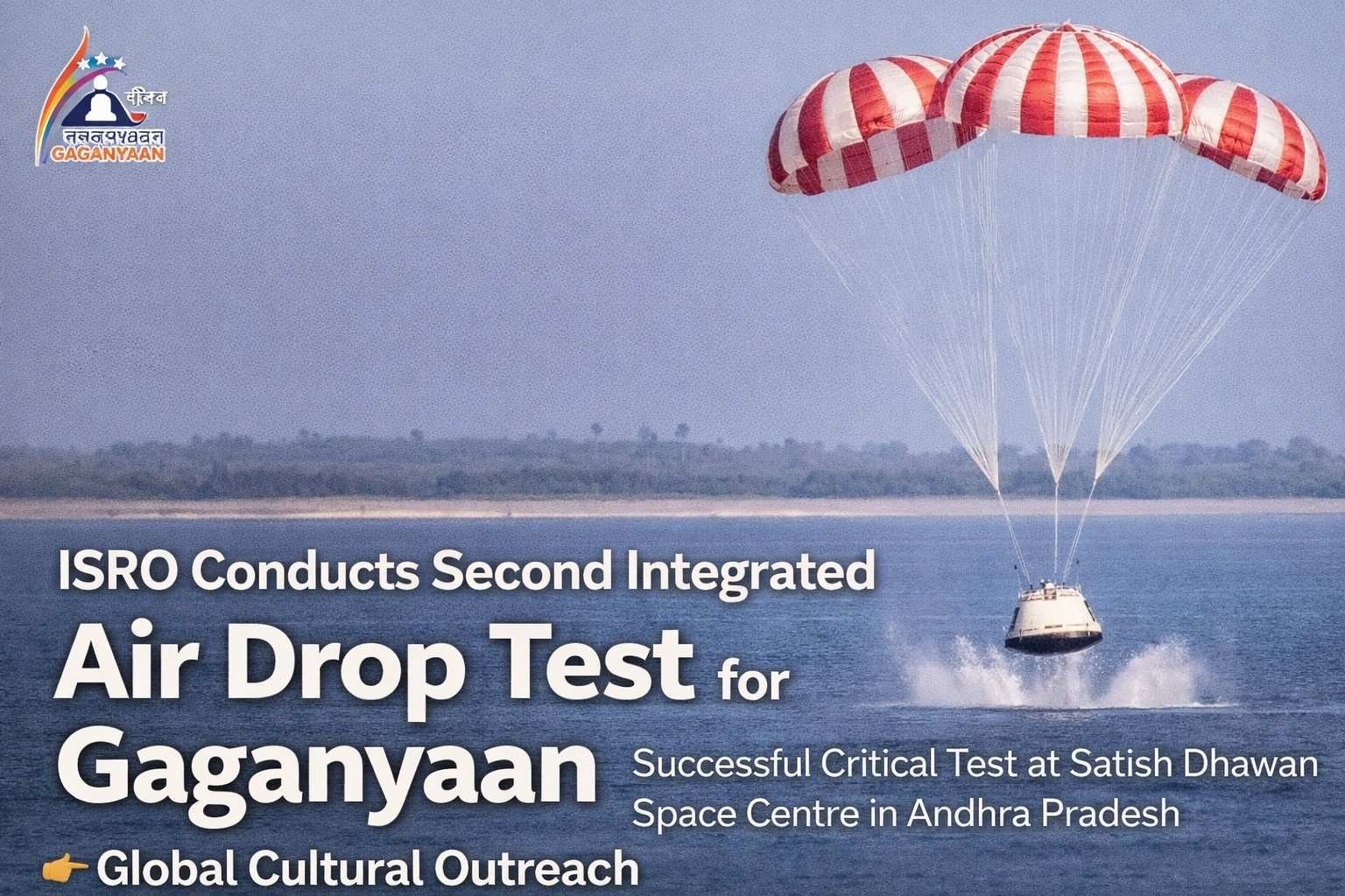 The Indian Space Research Organisation has successfully carried out the Second Integrated Air Drop Test (IADT-02) for its ambitious human spaceflight programme, Gaganyaan.