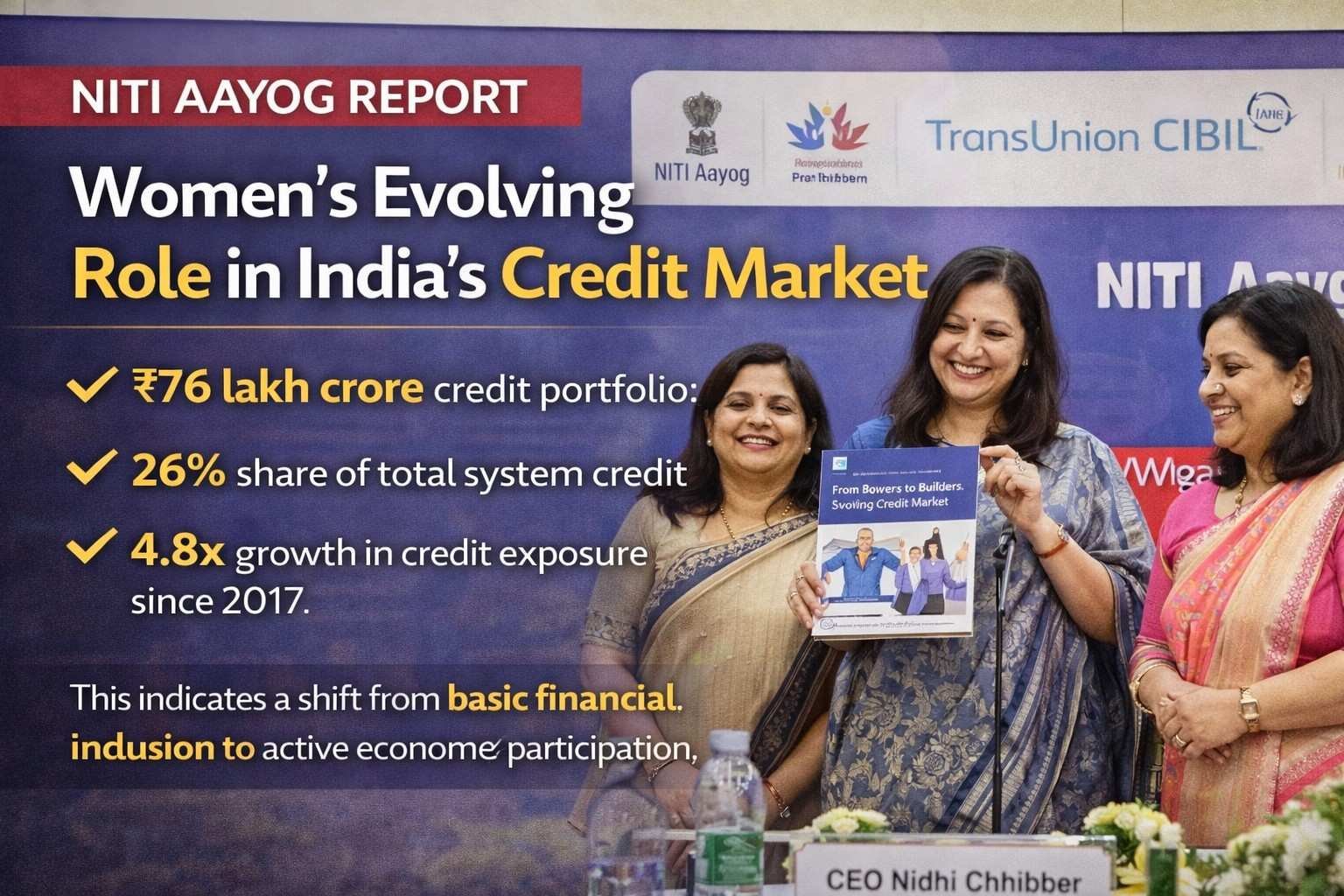 The NITI Aayog has released the second edition of its report titled “From Borrowers to Builders: Women and India’s Evolving Credit Market”.