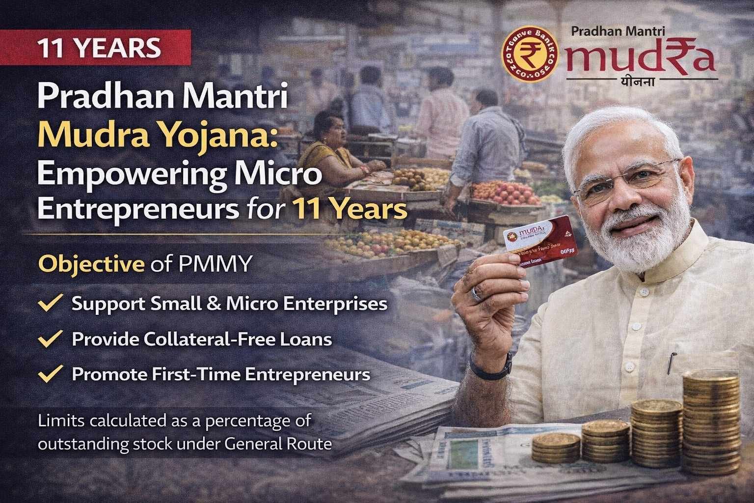 The Pradhan Mantri Mudra Yojana has completed 11 years of successful implementation, marking a significant milestone in promoting financial inclusion and micro-entrepreneurship across India.