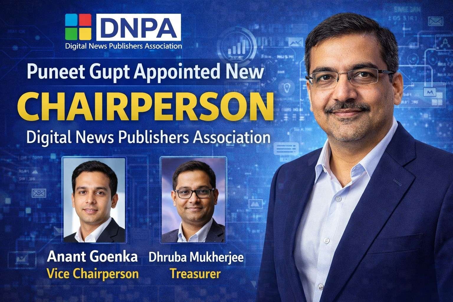 In a key leadership change, the Digital News Publishers Association (DNPA) has appointed Puneet Gupt as its new Chairperson following a recent board meeting.