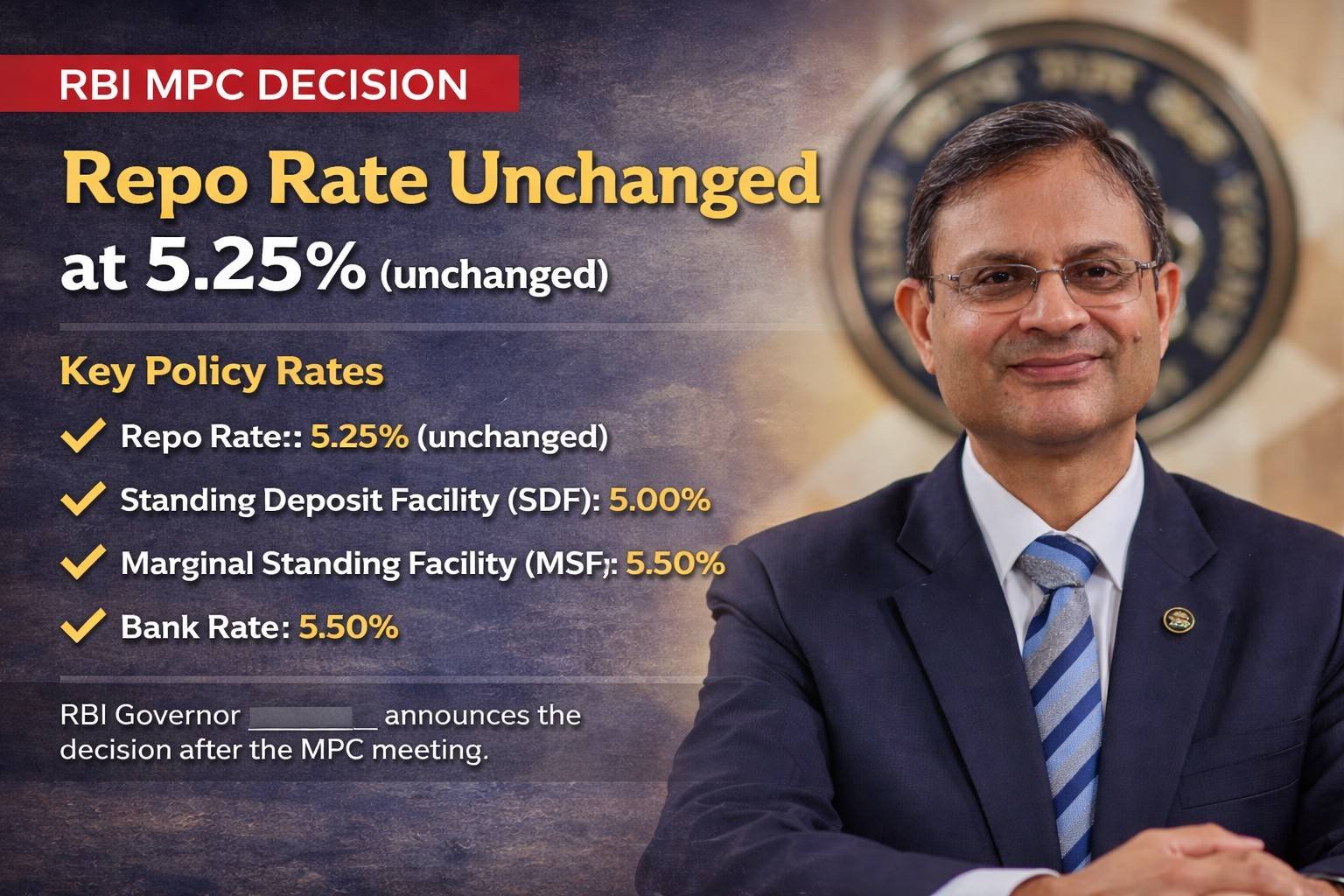 The Reserve Bank of India Monetary Policy Committee (MPC), in its first meeting for FY27, has decided to keep the repo rate unchanged at 5.25%.