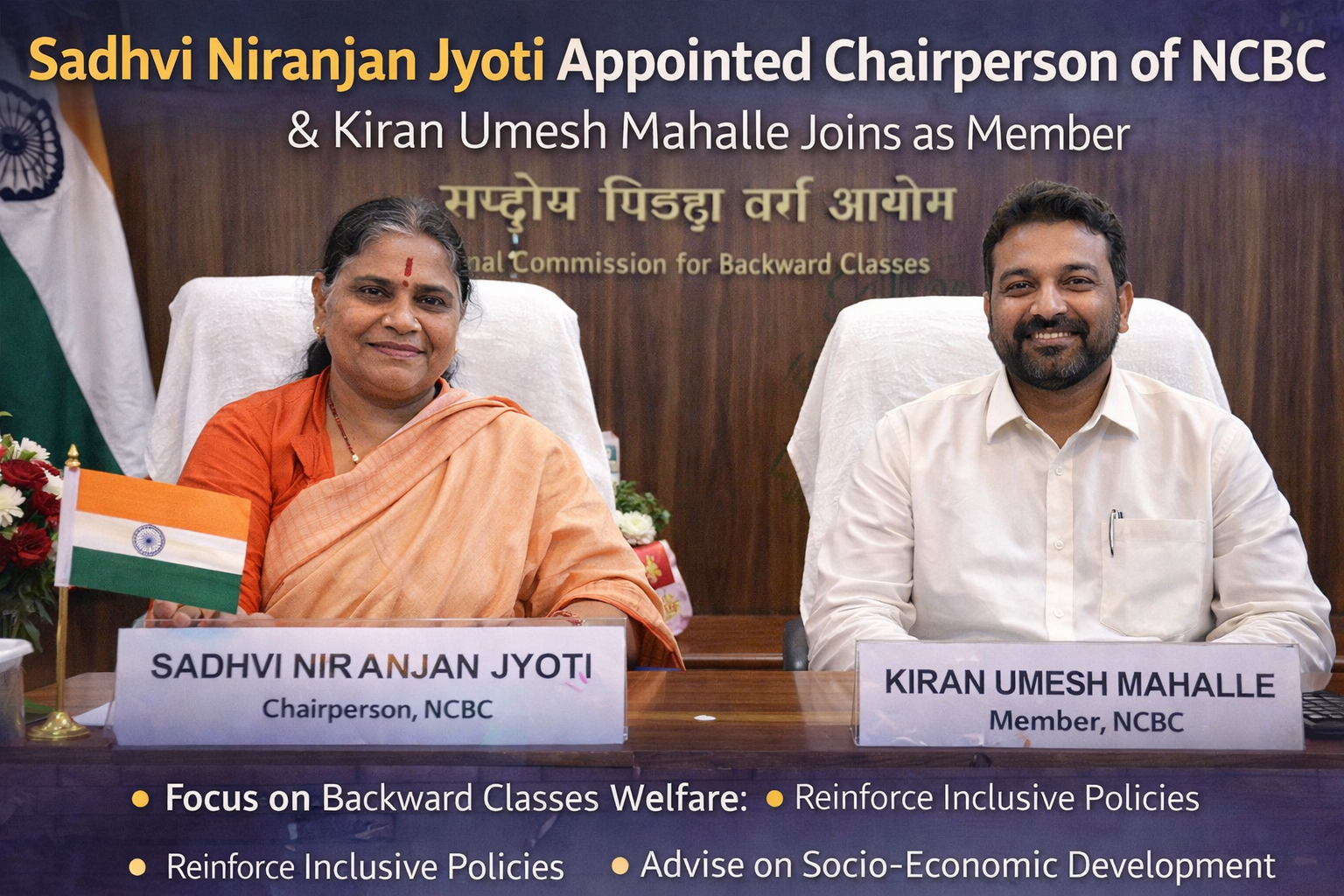 In an important development, Sadhvi Niranjan Jyoti has assumed charge as the Chairperson of the National Commission for Backward Classes (NCBC). Alongside her, Kiran Umesh Mahalle has taken over as a member of the commission.