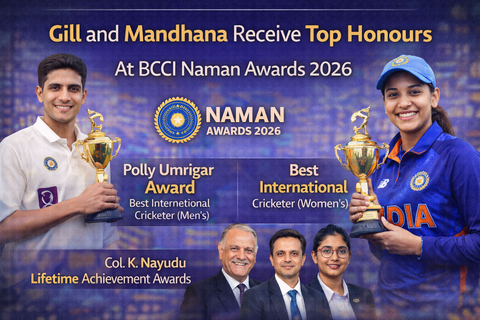 Indian cricket stars Shubman Gill and Smriti Mandhana were honoured as the Best International Cricketers (Men’s and Women’s) at the BCCI Naman Awards 2026 ceremony. The awards recognised their exceptional performances during the 2024–25 cricket season.