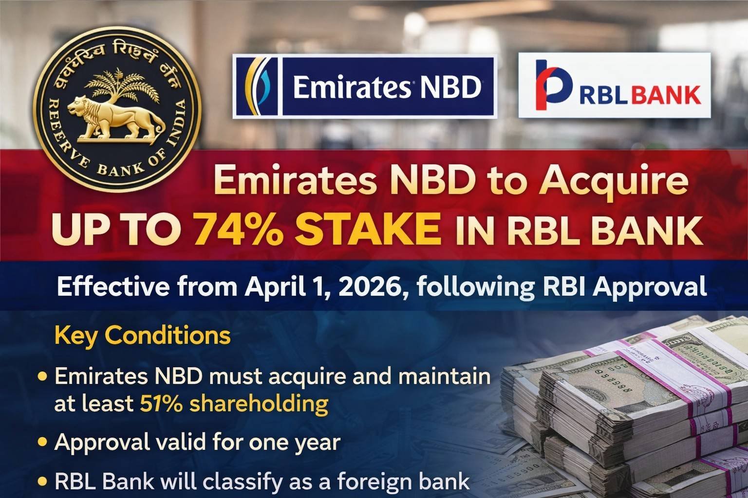 RBI Approves Emirates NBD’s Acquisition of Up to 74% Stake in RBL Bank