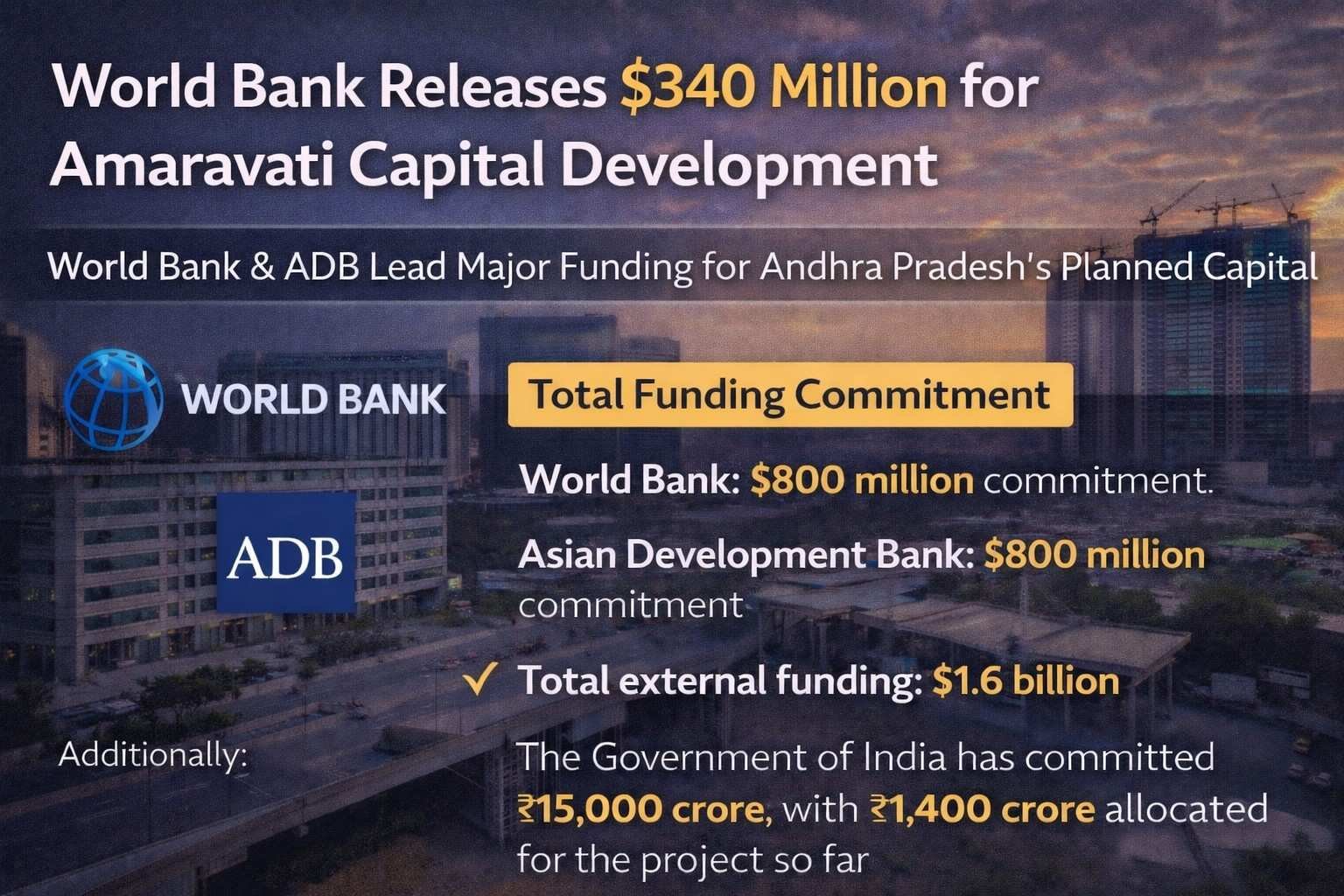 The World Bank has disbursed $340 million so far for the Amaravati Capital Phase-I development project in Andhra Pradesh.