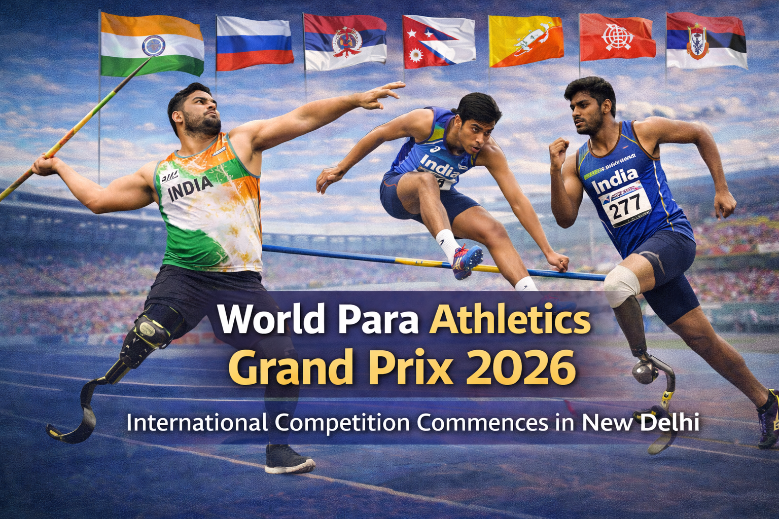 The World Para Athletics Grand Prix 2026 commenced in New Delhi and will continue until March 13, 2026. The event features participation from top para-athletes from multiple countries and serves as an important international competition in the para-athletics calendar.